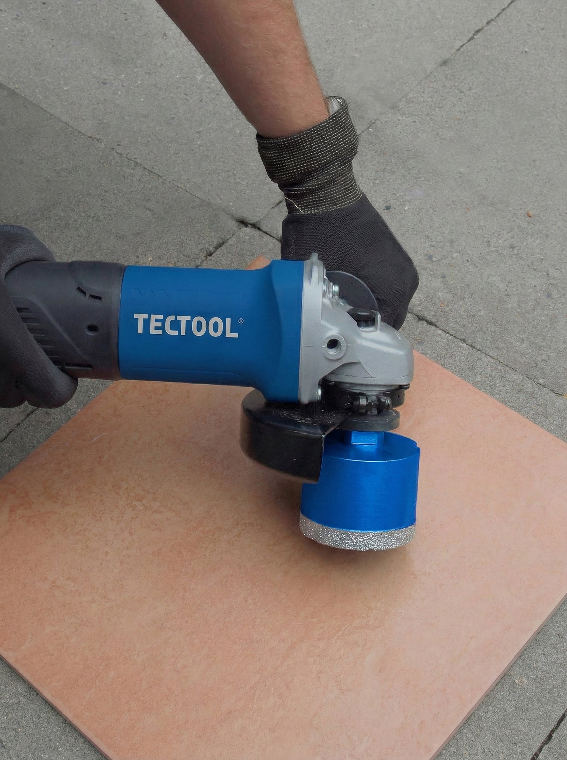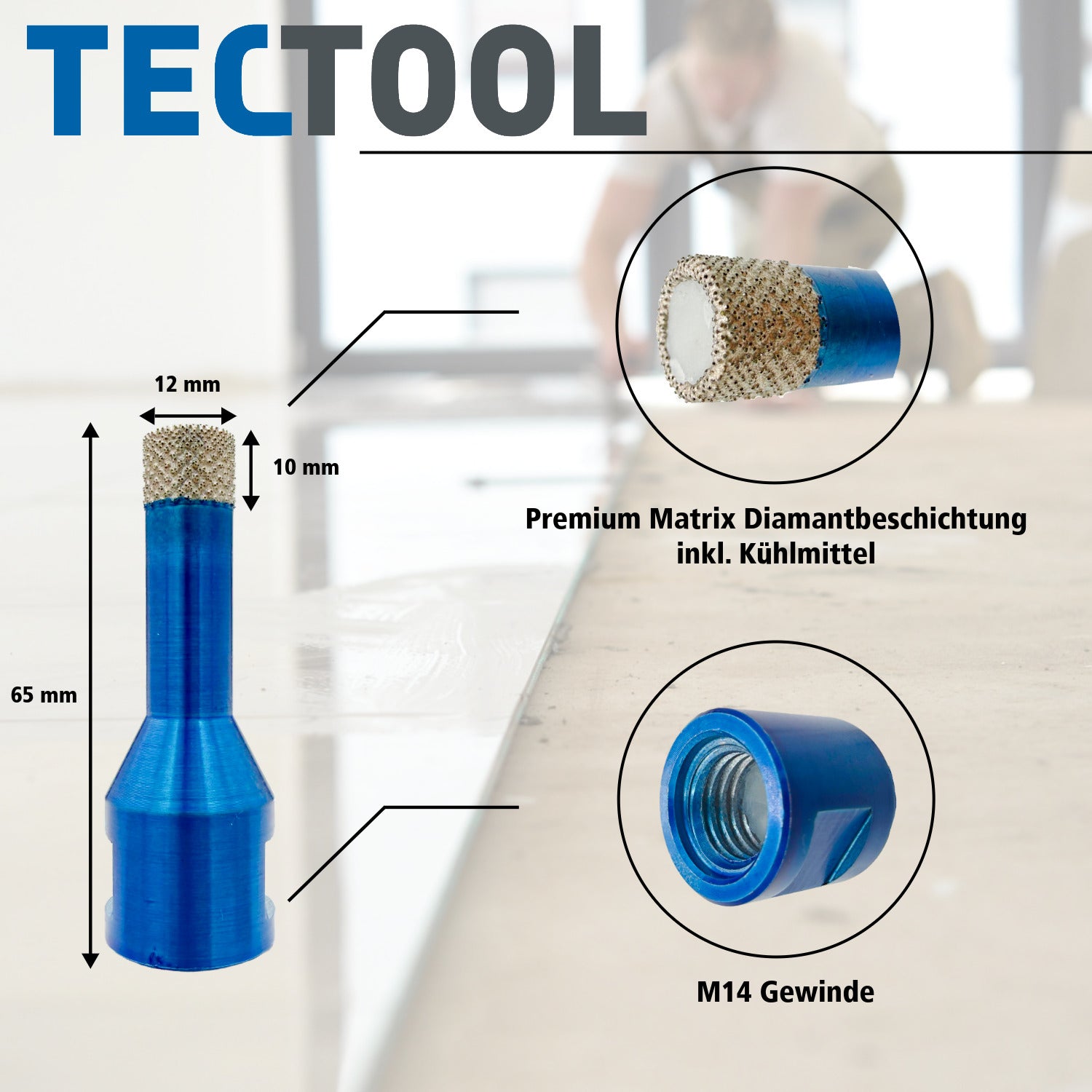TECTOOL Diamant-Trockenbohrkrone mit Matrixsegmentierung ideal für Fliesen / Feinsteinzeug und Naturstein. Extrem langlebig und effizient.