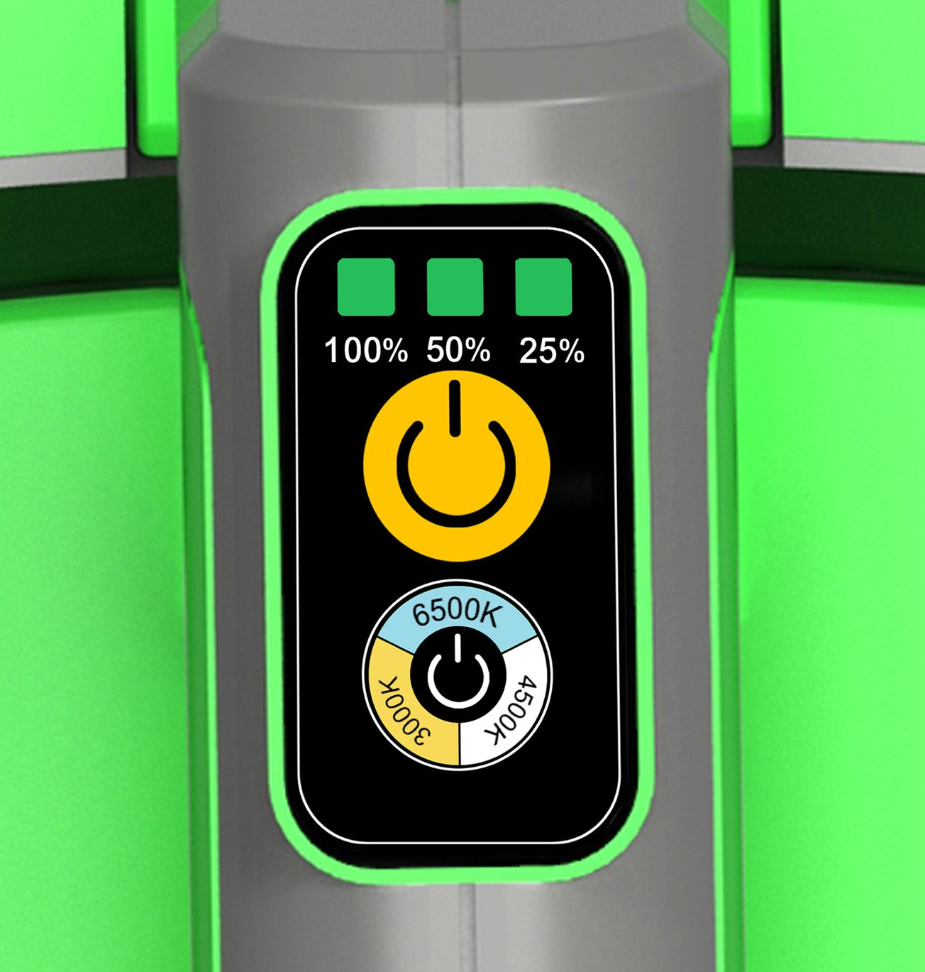Die Ausrichtung der LEDs ist variabel, drehbar und sorgt so immer für den idealen Abstrahlwinkel bei der Arbeit. Dimmbar in 3 Stufen, sowie Kelvin in 2 Stufen einstellbar, perfekt für jedes Gewerk.